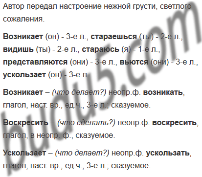 Прочитай текст. Какие чувства выразил автор, какое настроение передал? Найди и выпиши только глаголы настоящего времени. Рядом в скобках напиши личное местоимение, которое можно подставить, и определи, в каком лице употреблён глагол.