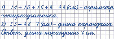 Сначала нахожу периметр четырёхугольника. Затем сравниваю этот периметр с периметром пятиугольника, то есть узнаю, на сколько периметр пятиугольника больше, чем периметр четырехугольника.