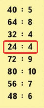 64 : 8 = 8 (36 - 28) • 5 = 40