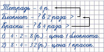 1) Посчитай, хватит ли 100 р., чтобы купить 8 таких тетрадей, 2 блокнота и 1 набор красок, если 1 тетрадь стоит 4 р.