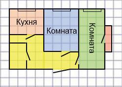 Ширина комнаты 4 клеточки, значит, настоящая ее ширина 4 м.