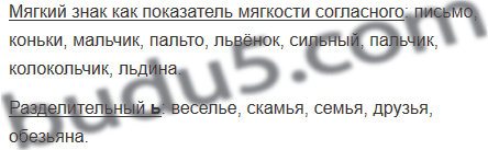 Выпиши сначала слова, в которых ь показывает мягкость согласного звука, а потом слова с разделительным ь.