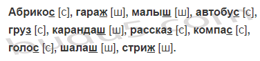 Абрикосы, гаражи, малыши, автобусы, грузы, карандаши, рассказы, компасы, голоса, шалаши, стрижи.