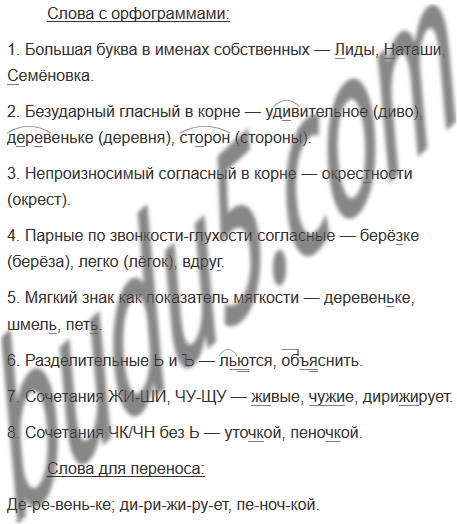 Найдите в тексте одно-два слова на каждую из восьми известных вам орфограмм и выпишите их. Выберите три любых слова и разделите их для переноса.