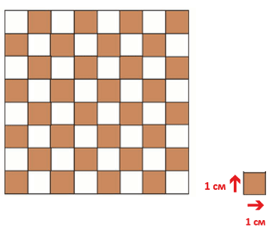 1. Дима хотел изготовить такую шахматную доску. Каждая клетка на этой доске - 1 см2.