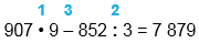 | 907 • 9 - 852 : 3 = 7 879 |
