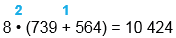 | 8 • (739 + 564) = 10 424 |