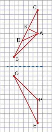 Треугольник РОЕ симметричен треугольнику АВС.