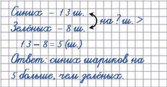 4) У Даши было 13 синих шариков и 8 зеленых шариков. На сколько синих шариков больше, чем зеленых?