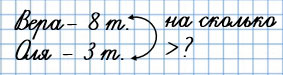 У Веры было 8 тетрадей, а у Оли - 3 тетради. На сколько больше тетрадей было у Веры, чем у Оли?