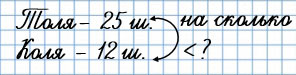 У Толи было 25 воздушных шариков, а у Коли - 12. На сколько меньше воздушных шариков было у Коли, чем у Толи?