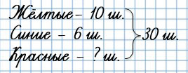 3. К Новому году купили 30 ёлочных шаров жёлтого, синего и красного цвета. Жёлтых шаров было 10, синих - 6. Сколько было красных шаров?