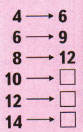| 3, 6, 9, ... | 7, 14, 21, ... | 4, 8, 12, ... |