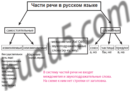 Используя сведения параграфа, дополните схему «Части речи в русском языке». Приведите в схеме примеры слов различных частей речи. Подготовьте рассказ о частях речи.