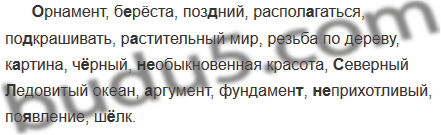 ..рнамент, б..рёста, поз(?)ний, распол..гаться, по..крашивать, р..стительный мир, рез(?)ба по дереву, к..рти-на, ч..рный, (не)обыкновенная красота, (С, с)еверный (Л, л)едовитый океан, ..ргумент, фундамен.., (не)прихотливый, по..вление, ш..лк.