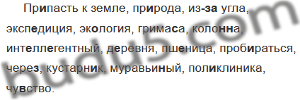 Пр..пасть к земле, пр..рода, из(за) угла, эксп..диция, эк..логия, грима(с,сс)а, коло(н,нн)а, инт..лл..гентный, д..ревня, пш..ница, проб..раться, чере(с,з), кустарн..к, муравьи(н,нн)ый, пол..клиника, чу(?)ство.