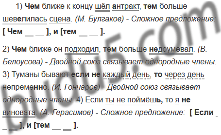 1) Чем ближе к концу шёл ..нтракт тем больше шев..лилась сцена. (М. Булгаков) 2) Чем ближе он подходил тем больще (не)доумевал. (В. Белоусова) 3) Туманы бывают если не каждый день то через день непреме(н, нн)о. (И. Гончаров) 4) Если ты не поймёш(?) то я (не)виновата. (А. Герасимов)