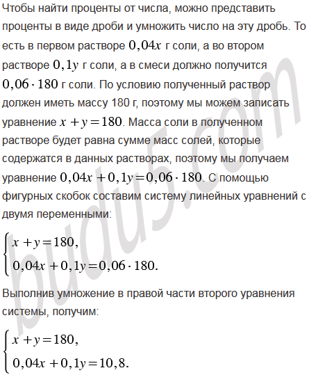 Сколько надо взять 4-процентного и сколько 10-процентного раствора соли, чтобы получить 180 г 6-процентного раствора?
